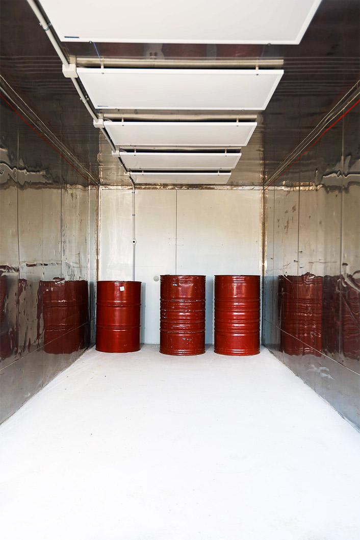 ハチミツは搾蜜工場から樽に入れられて届き、製造用に選別されるまで当社の倉庫で保管されます。